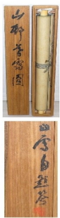 ![]() 作品詳細 管理番号: 185135 作者: 寺崎広業 作品名:秋渓 掛軸、共箱、二重箱、象牙軸、絹本、 落款・印章 本紙サイズ:110 x 35.5cm (約30号) 全体サイズ:182 x 49cm 本作品は所定鑑定機関の鑑定証書の取得を保証します (お客様負担)。 作者略歴:1882年秋田藩御用絵師の狩野派 小室秀俊 に入門、1898年東京美術学校助教授、 1907年第1回 文展日本画審査員、1912年文展に「瀟湘八景」を出品。大観の作品とならび評判作となる、1913年美術学校日本 画主任、 1917年帝室技芸員 作者作品の所蔵先/東京国立近代美術館、東京国立 博物館、秋田県立近代美術館、島根県立美術館、北 海道立近代美術館、五島美術館、松岡美術館、秋田 市立千秋美術館、宮城県美術館、東京芸術大学大学 美術館、東大寺、他 販売価格: 150 万円 期間限定特別価格: 75 万円 (参考)2023年美術年鑑 作家評価 500万円/尺5 |